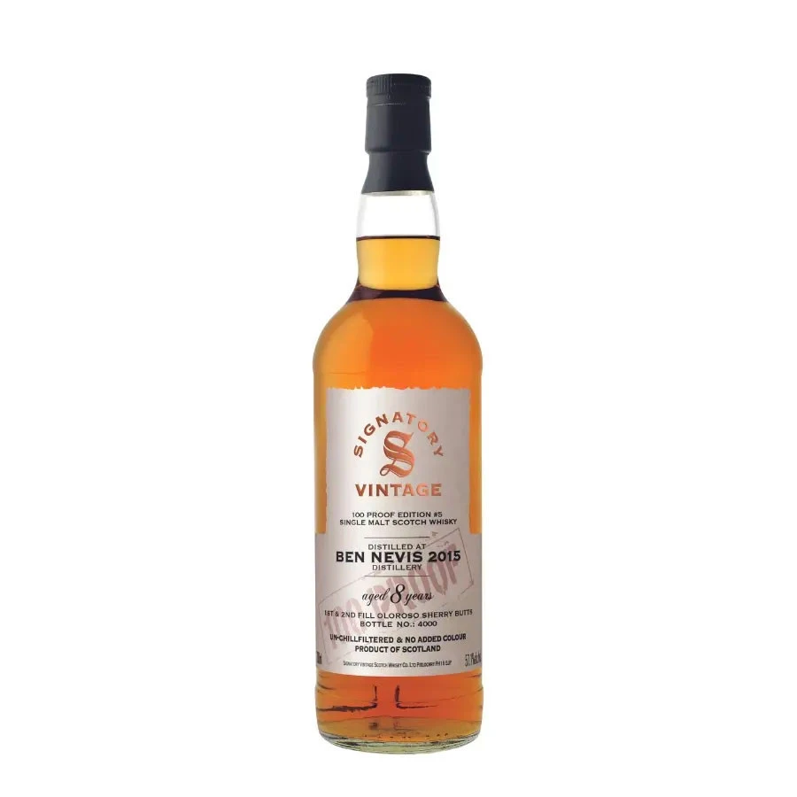 Ce Ben Nevis s’inscrit dans la gamme 100 Proof de l’embouteilleur indépendant Signatory Vintage. Une gamme qui met à l’honneur des whiskies aux expression intenses et aux profils aromatiques riches, comme ce Ben Nevis titrant à 57,1°.