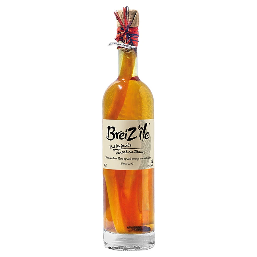 Boisson spiritueuse de fabrication artisanale, le rhum arrangé Breiz’île Ananas et Orange de type punch est élaboré depuis 2002 au restaurant Les Frères de la Côte à Camaret-sur-Mer dans le Finistère. Il est confectionné à partir de rhum blanc agricole de Guadeloupe macéré aux fruits frais et épices des îles durant une période minimale de 2 mois.