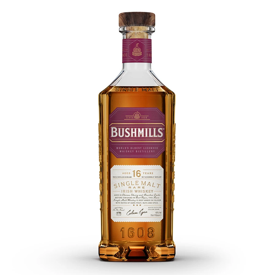 Il faut beaucoup de patience et de passion pour réaliser le Single Malt Bushmills 16 ans. Ce whiskey est issu de l’assemblage de deux whiskies qui ont vieilli durant 15 à 16 ans, l’un dans des fûts de chêne américain (Bourbon barrels) et de fûts de chêne européen ayant précédemment contenu du Xérès (Oloroso Sherry Butts), avant d’être mariés ensemble et affinés une année supplémentaire dans des fûts ayant contenu du Porto (Port pipes) pour une dernière maturation parfaite.