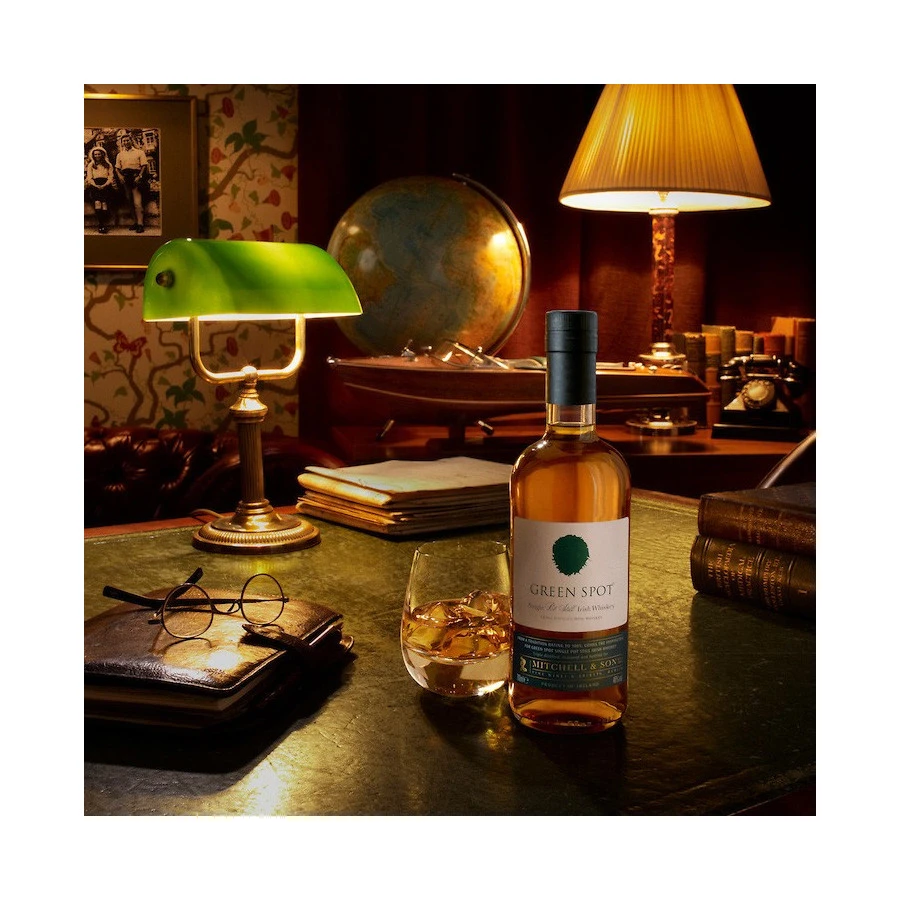 Prisé des connaisseurs d’Irish whiskey, Green Spot est un Single Pot Still whiskey issu d’une triple distillation et produit avec un mélange d’orge maltée (40%) et non maltée (60%)(Pure pot still whiskey) qui a ensuite vieilli en grande partie dans des fûts ayant contenu du sherry (xérès) et minoritairement en fûts de bourbon. Les whiskeys entrant dans la composition de Green Spot sont tous âgés de 7 à 10 ans.