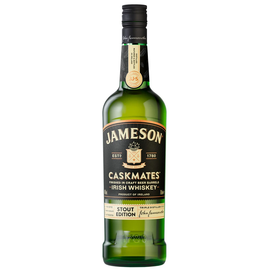 Fruit de la concertation entre le maître distillateur de Jameson et le maître brasseur de la maison Franciscan Well de Cork qui a recours aux anciens fûts de whiskey Jameson pour faire vieillir ses bières stout, Jameson Caskmates Stout edition est un whiskey moderne qui éveille la curiosité.