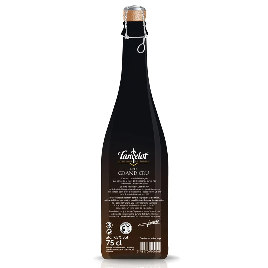 Lancelot Grand Cru a été brassée dans la plus pure tradition artisanale en quantité limitée. C’est une véritable bière « pur malt » non filtrée et de triple fermentation. Elle possède un goût puissant et riche, très aromatique ainsi qu’une très belle robe aux reflets « ruby ».