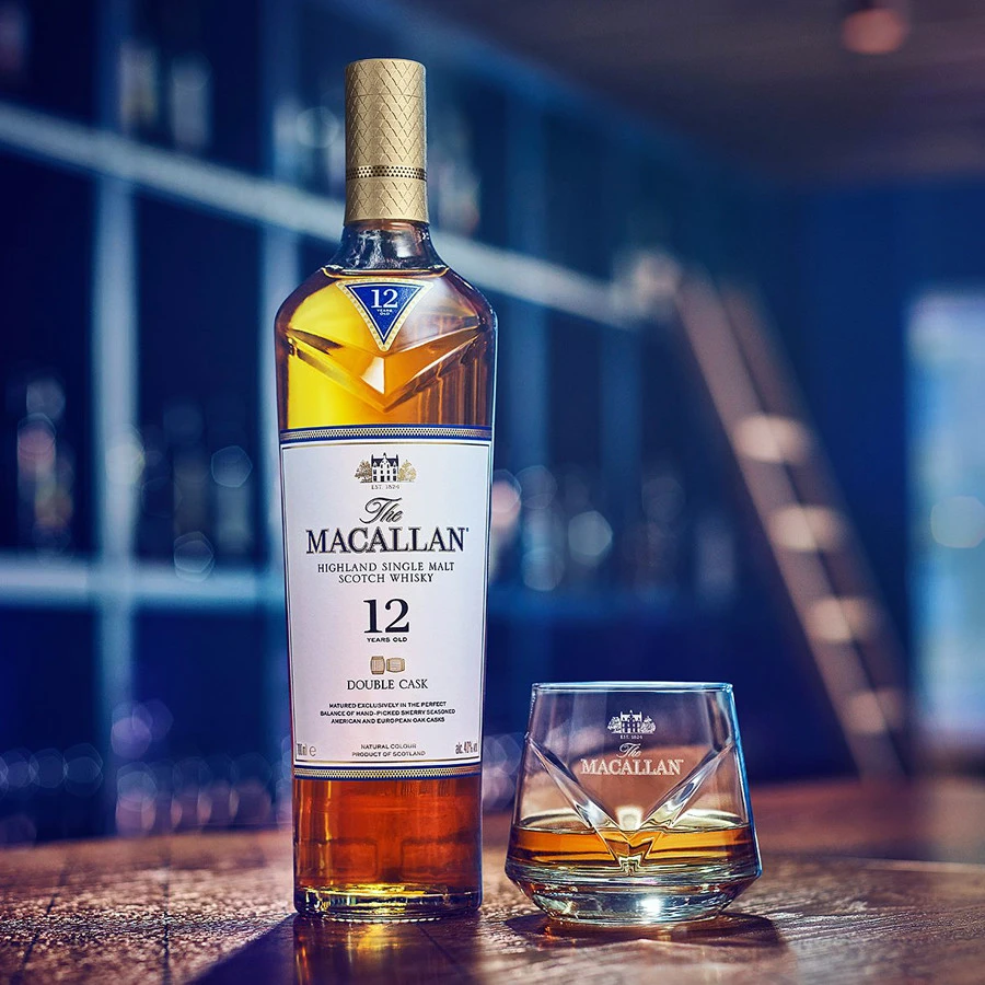 Macallan 12 ans Double Cask possède une palette aromatique riche avec des arômes épicés et boisés où se marient les notes de vanille, caramel, orange confite avec les fruits secs et la douceur du miel.