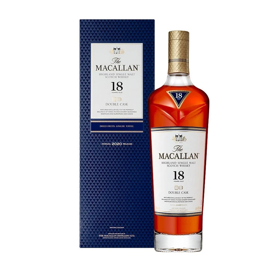 The Macallan 18 ans est un Double Cask vieilli pendant au moins 18 ans dans un ensemble unique et étudié de fûts Sherry en chêne européen et américain d’une qualité exceptionnelle.