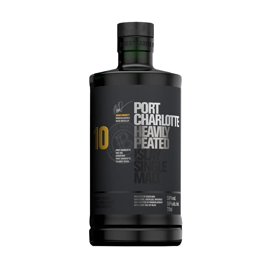 Il est fabriqué à partir de 100% d’orge écossaise du comté d’Inverness et d’eau de source provenant d’Islay. Port Charlotte 10 ans est tourbé avec 40 ppm*. Il est vieilli à 75% dans des fûts de whiskey Bourbon américain de premier remplissage et à 25% en fûts de vin français de second remplissage.